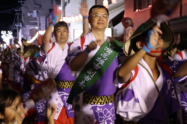 市役所へ訪れた際には市職員で出迎えを実施し、その後、おしまこ流し踊りへも参加していただき、むつ市の夏を体験してもらいました。
