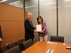 経済産業省では、津島淳衆議院議員、山本知也むつ市長とともに、古賀友一郎経済産業副大臣に対し、地域が誇りを持って国策に協力していけるよう、リサイクル燃料貯蔵センターに関する諸課題について真摯に取り組んでいただくことを要請しました。