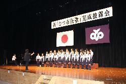 平成22年度から検討・審議を行った新しい「むつ市民歌」が平成25年9月1日に制定されました。 「新市民歌」は、9月1日に下北文化会館で行われた「新むつ市民歌完成披露会」で、お集まりいただいた約500名の市民のみなさんにお披露目されました。 |