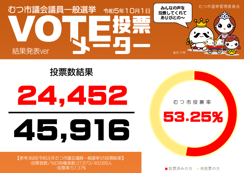 投票者数は24,452人で、投票率は53.25%となりました。