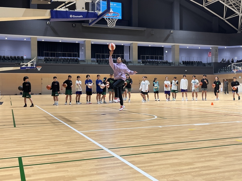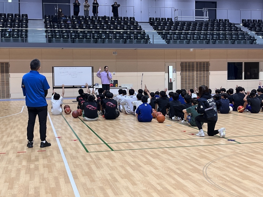 青の煌めきあおもり国スポ開催まで残り624(むつし)日前を経過したことを記念して、元プロバスケットボール選手で2026年のあおもり国スポ・バスケットボール競技(成年女子)で青森県代表チームとして出場、活躍が期待される中村優花選手を講師としてお招きし、バスケットボールクリニックを開催しました。