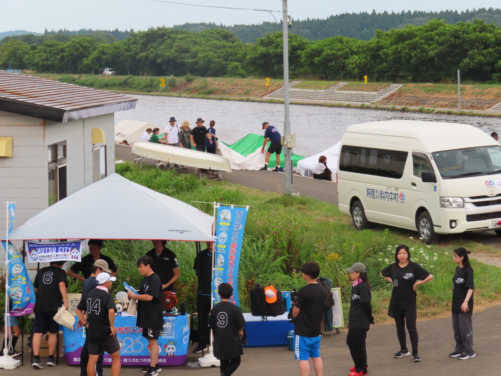 7月27日(日)新田名部川にて行われた第27回まさかりレガッタにむつ市国スポ・障スポPR隊として参加しました。