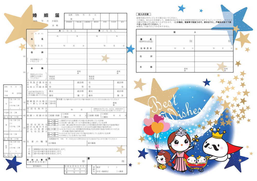 本庁舎市民課、川内・大畑庁舎市民生活課および脇野沢庁舎総合課で配布しているほか、こちらのページよりダウンロードできますので、おふたりの記念すべき日にぜひご利用ください。