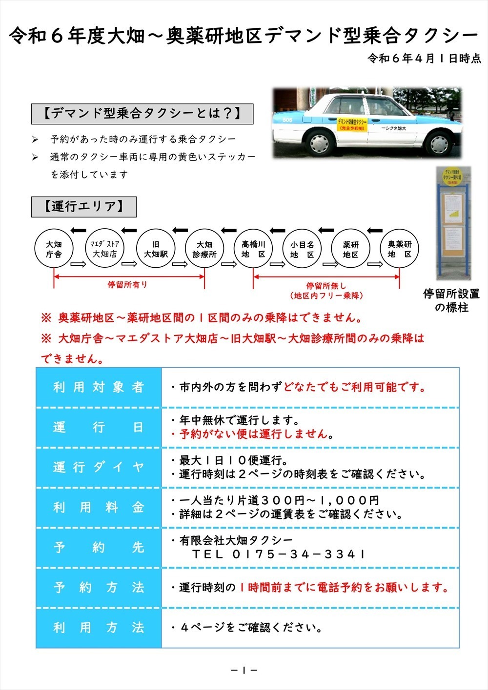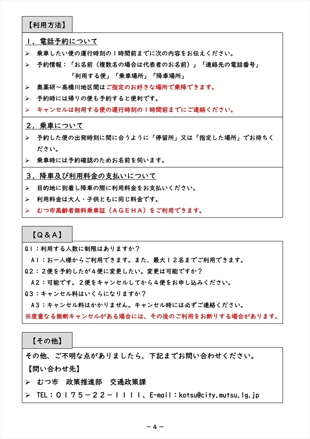 4.運行時刻の1時間前までに電話予約