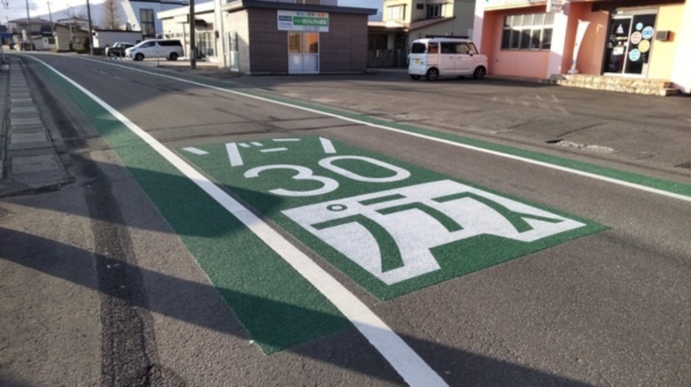 警察が実施する30km/hの速度規制と、むつ市が実施するスムーズ横断歩道およびゾーン30プラスの路面標示の設置が完了しました。