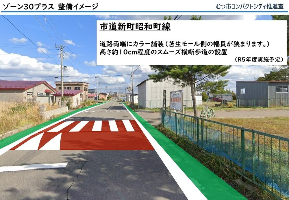 令和4年4月5日、国土交通省によりむつ市昭和町地区(仲町、若松町、金曲、昭和町A・B、下北町、緑町B、新町、古川町、海老川町)がゾーン30プラスの整備エリアとしてアナウンスされました。