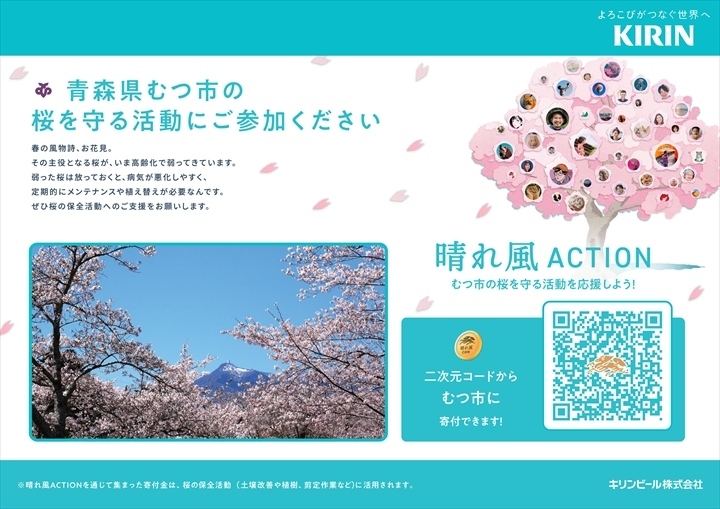 キリンビール株式会社様では、全国の自治体と協力し日本の風物詩を支援する活動「晴れ風ACTION」を行っており、2025年、むつ市の早掛沼公園の桜が支援先として選定されています。