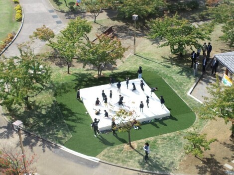 金谷公園での人と人の交流や賑わい創出に向けて、下北文化会館や大学キャンパスと金谷公園をつなぐ大階段・広場整備が始まります。