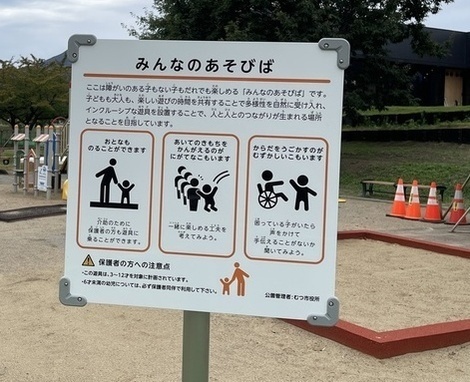 6月末からは、こどもを真ん中にとらえながら多様な価値や社会変化を包括する公園づくりに向けて、インクルーシブ遊具(回転遊具、ジャンピング遊具等)の設置工事を砂場や幼児遊具があるスペースで行います。