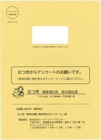 アンケートがお手元に届いた方々におかれましては、お手数をおかけしますが、ご協力くださいますよう、お願い申し上げます。