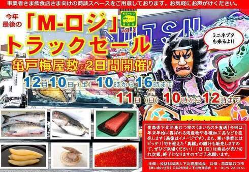 公益社団法人下北物産協会では、専用トラックを導入し、むつ下北地域の特産品を早く、安く、首都圏などへ直接届ける物流サービスである「M-ロジ」事業を展開しております。