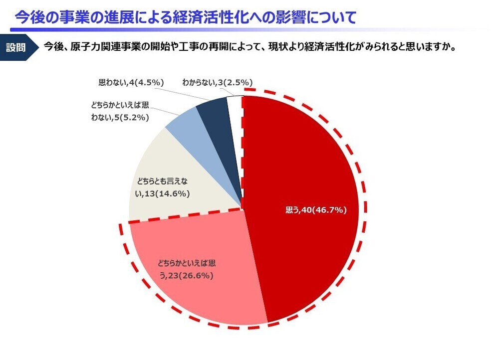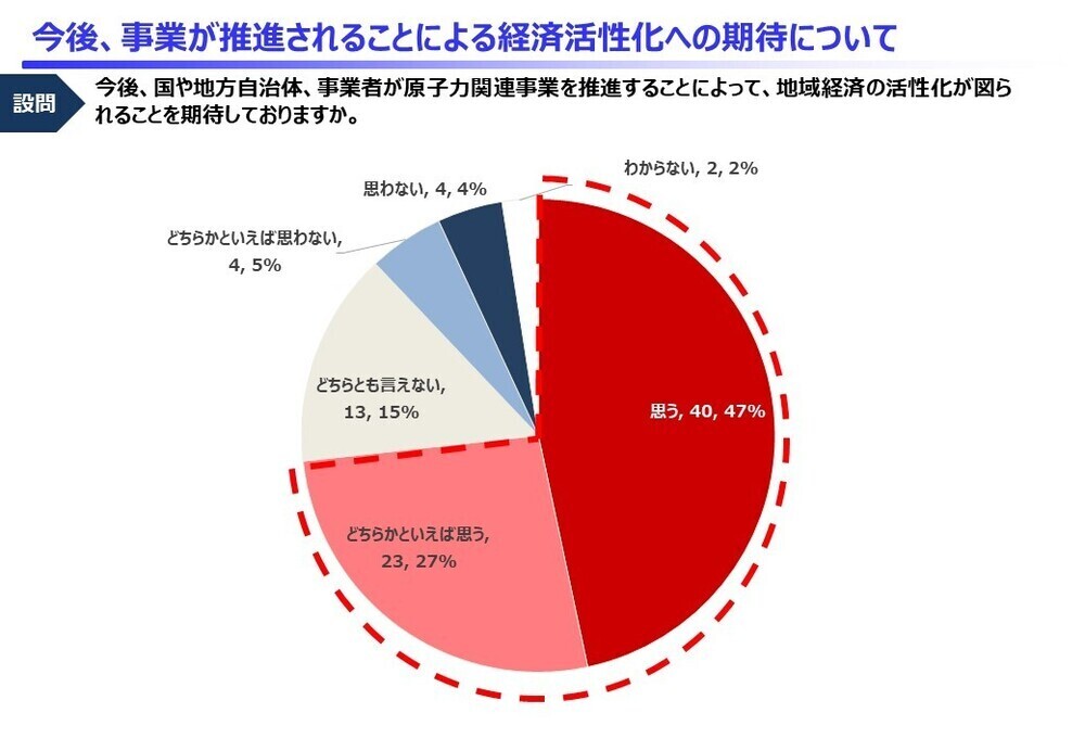 アンケート調査結果により、震災後、原子力関連事業が停滞している状況からむつ市の商工事業者の売り上げも上がっていないという声や、地域経済活性化のためにも原子力関連事業の進展が必要という声が多数あるものと受けとめられる。