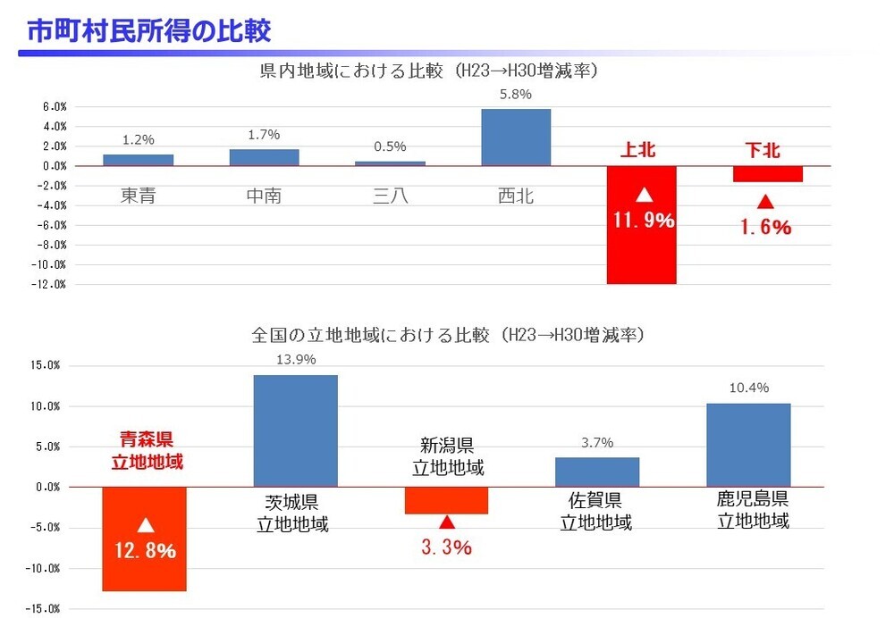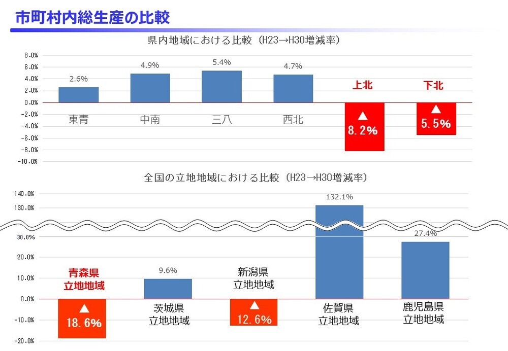 また、県内の原子力関連施設立地市町村において、事業の停滞により地域経済が低迷している状況が、経済指標である市町村民経済計算の客観的な分析結果でも表れている。
