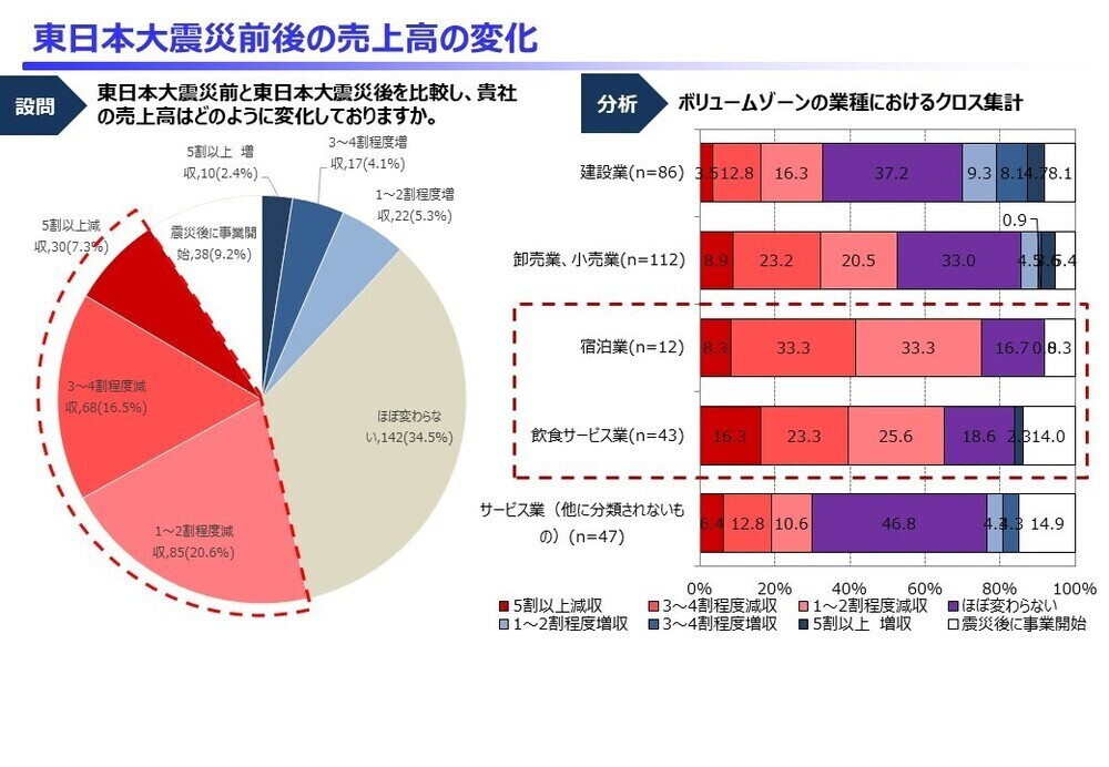 むつ市内商工事業者に対して、原子力関連施設の建設工事等が進んでいた震災前と休止した震災後の経済動向の比較などについてアンケート調査を行いました。