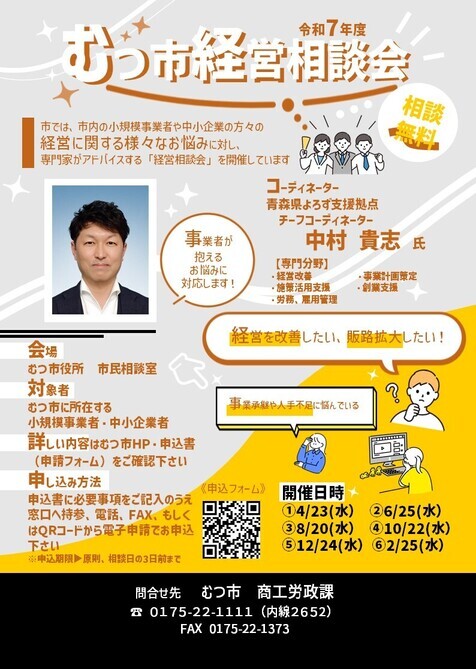 市では、市内の小規模事業者や中小企業の方々の経営に関する様々なお悩みに対し、専門家がアドバイスする「経営相談会」を開催しています。